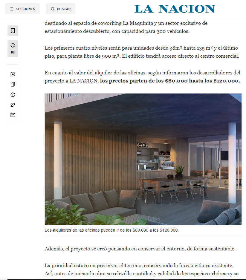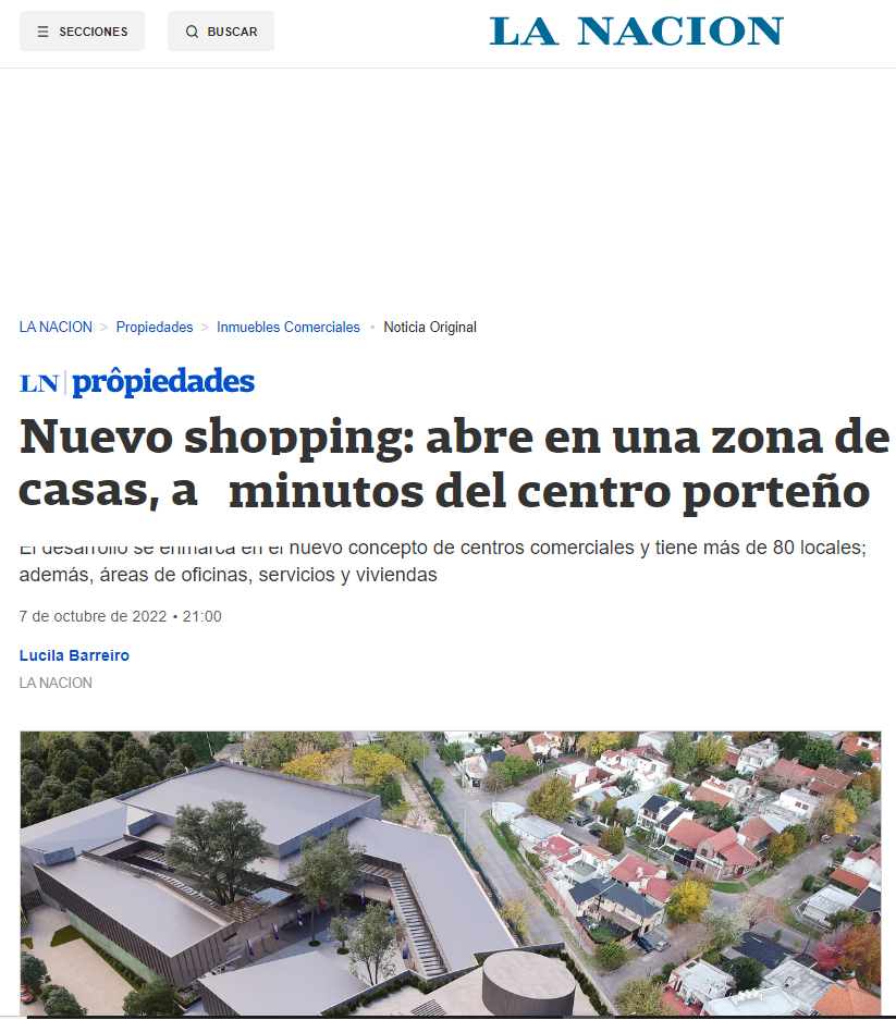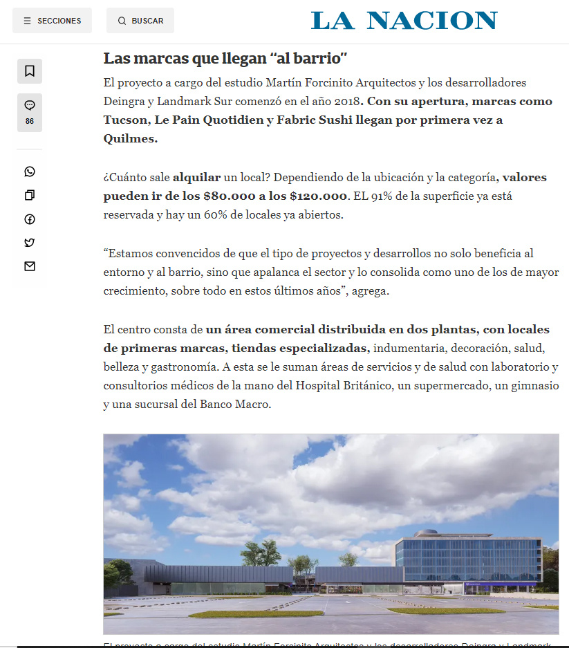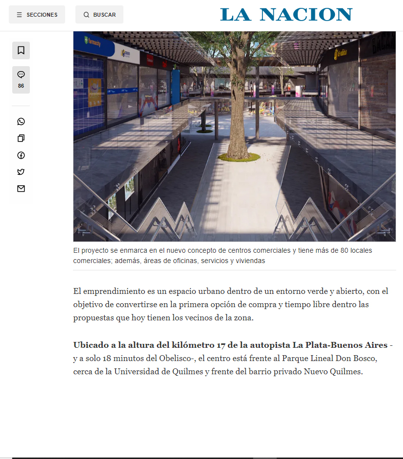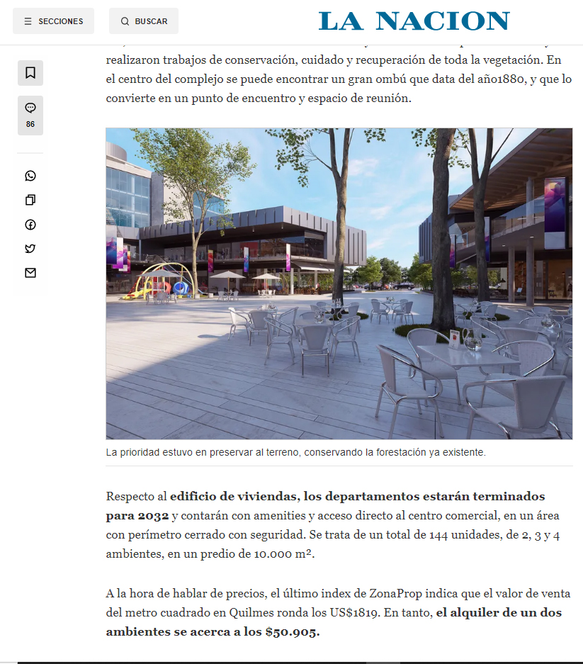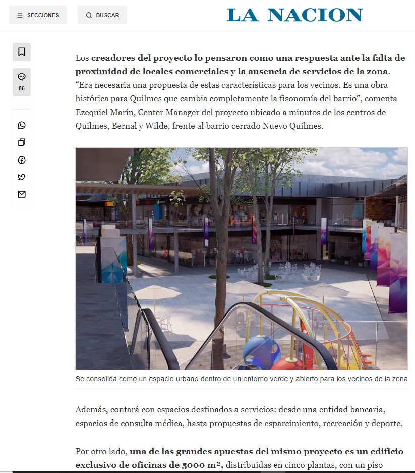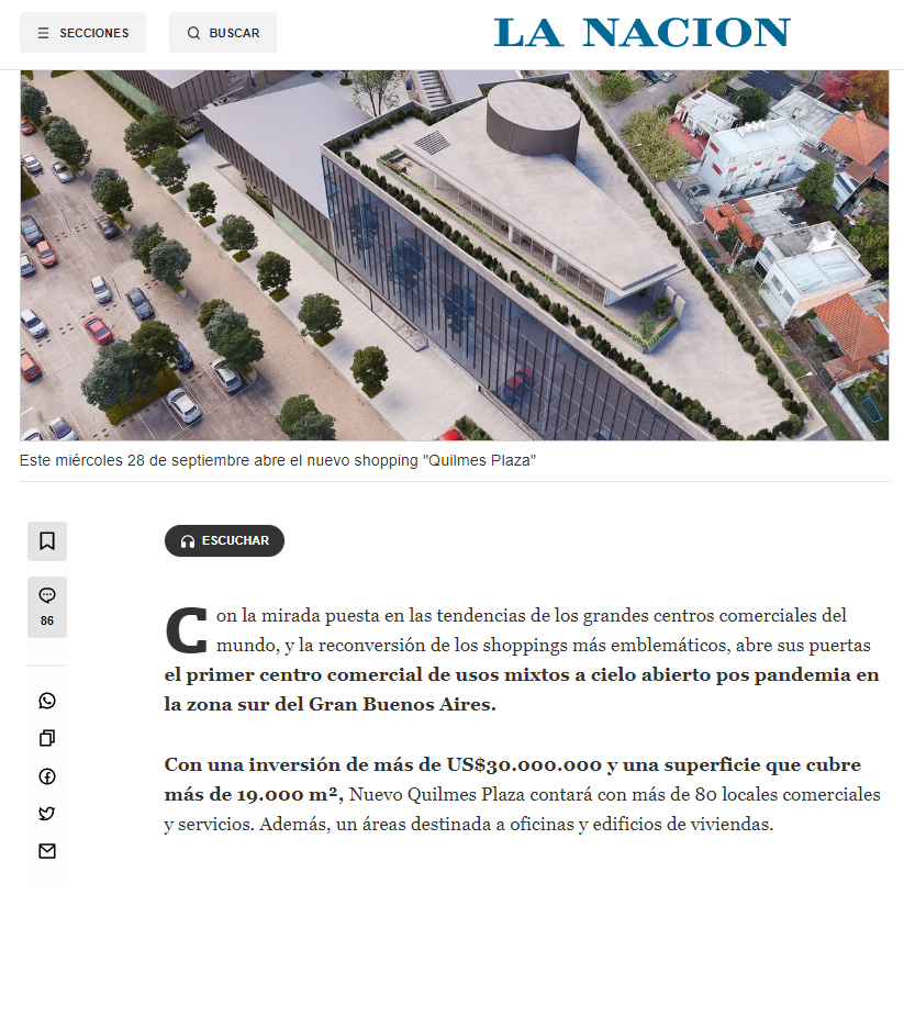 Publicación en LA NACION de Nuevo Quilmes Plaza. 07-10-2022: